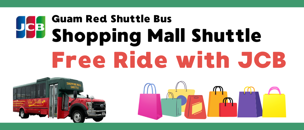 Present your JCB Card to the driver when you board the bus for a free ride on the Shopping Mall Shuttle of the Guam Red Shuttle Bus!