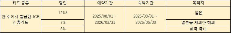 - 한국 에서 발급된 JCB 신용카드에 한해 제공됩니다.