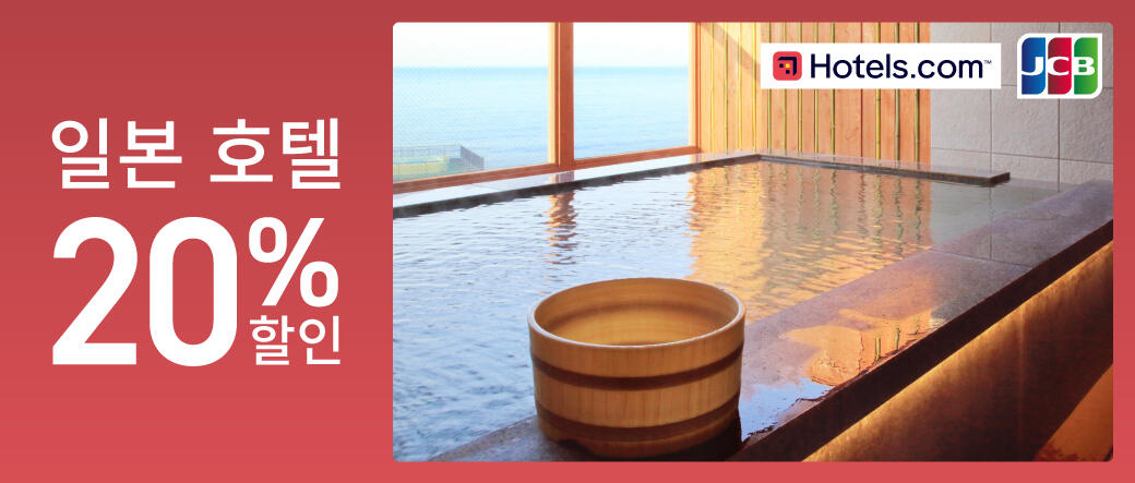 Hotels.com에서 일본 호텔을 예약하고 JCB 카드로 결제하면 20% 할인!