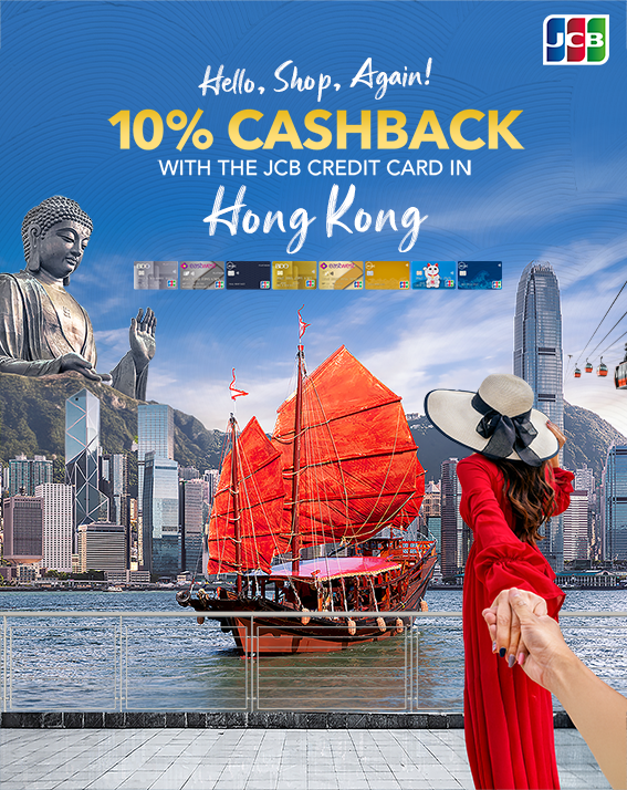 Travel to Hong Kong with your Philippine-issued JCB Credit Card! Get a 10% Cashback or up to HKD 150 for in-person purchases in Hong Kong.