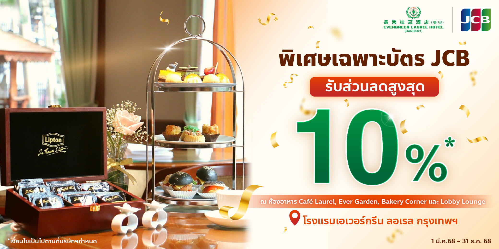 3.1 รับส่วนลด 10% เฉพาะค่าอาหารจากเมนูอาลาคาร์ท มื้อกลางวันและเย็น ที่ห้องอาหาร Café Laurel, Ever Garden and Lobby Lounge