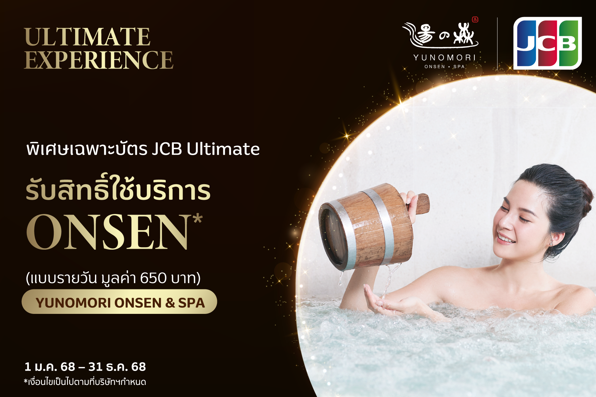 3. รับสิทธิ์ในการเข้าใช้บริการออนเซ็น (แบบรายวัน) มูลค่า 650 บาทเมื่อชำระค่าบริการนวดในราคาตั้งแต่ตั้งแต่ 1,000 บาท/ ท่าน ด้วยบัตรเครดิต JCB Ultimate ที่ยูโนะโมริ ออนเซ็น แอนด์ สปา สาขาสุขุมวิท, สาขาสาทร และสาขาพัทยา
