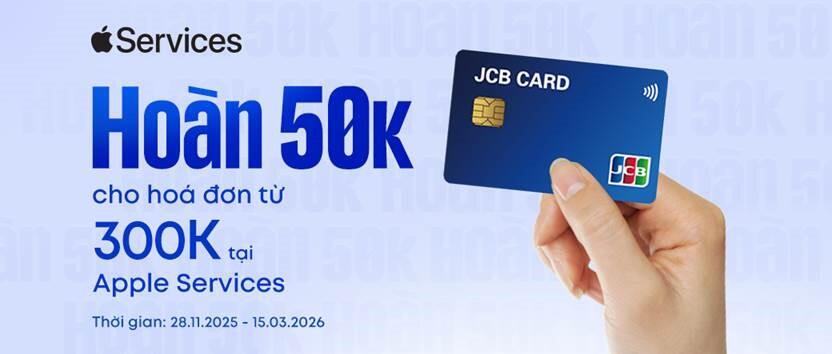Khách hàng nhận hoàn tiền 50,000VNĐ cho mỗi thẻ khi tổng chi tiêu đạt từ 300,000 vnđ và thanh toán bằng thẻ JCB phát hành tại Việt Nam trong