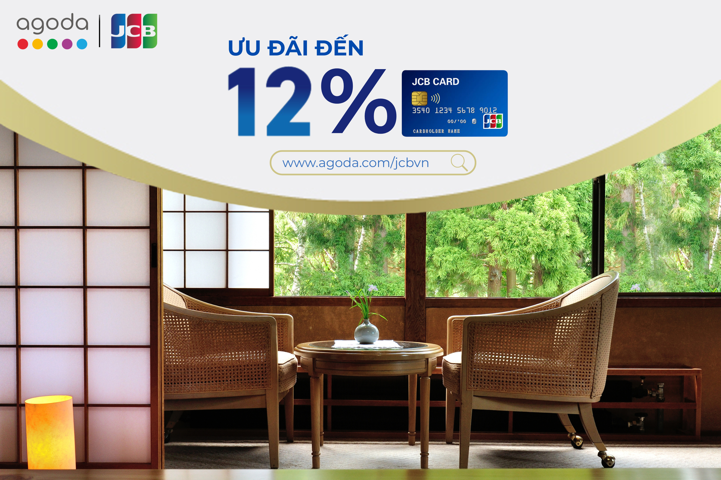 Ưu đãi đến 12%, tối đa 50 đô la Mỹ (~1.250.000 VND) khi đặt phòng khách sạn Agoda trên trang web dành riêng cho chương trình tại: https://www.agoda.com/jcbvn, chi tiết như sau: