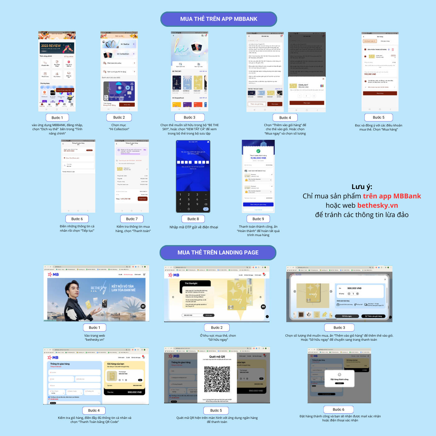 Mở thẻ siêu đơn giản, tiện lợi qua App MBBank hoặc website https://bethesky.vn như hướng dẫn bên dưới và cùng bước vào thế giới Be The Sky ngay hôm nay!