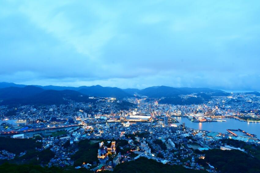 日本有不少地方都能观赏到夜景,其中长崎市的夜景荣获 “世界新三大夜景”和 “日本新三大夜景”2大认证,甚至有 “价值千万美金”的美誉。想要将长崎夜景尽收眼底,最佳的观赏地要数高海拔333米的稻佐山了。从长崎车站乘坐巴士到达稻佐山公园后,可以乘坐单轨坡道车或直接徒步约15分钟至山顶展望台。另外,也推荐从长崎车站乘巴士到渊神社站下车,再乘坐缆车到达稻佐山山顶。