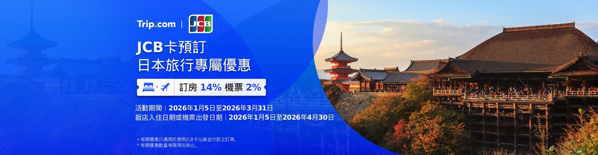1.在Trip.com預訂日本飯店,並使用JCB卡支付,可享14% OFF!