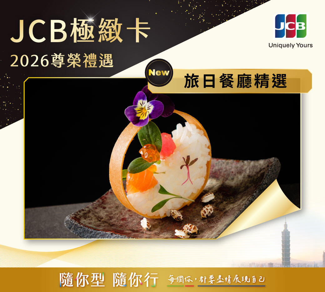 - 本活動限刷JCB極緻卡實體卡結帳始享禮遇(包含預訂訂金),恕不得與其他優惠合併使用;行動支付、電子支付或第三方支付等,非直接使用實體JCB卡之交易恕不適用本活動。