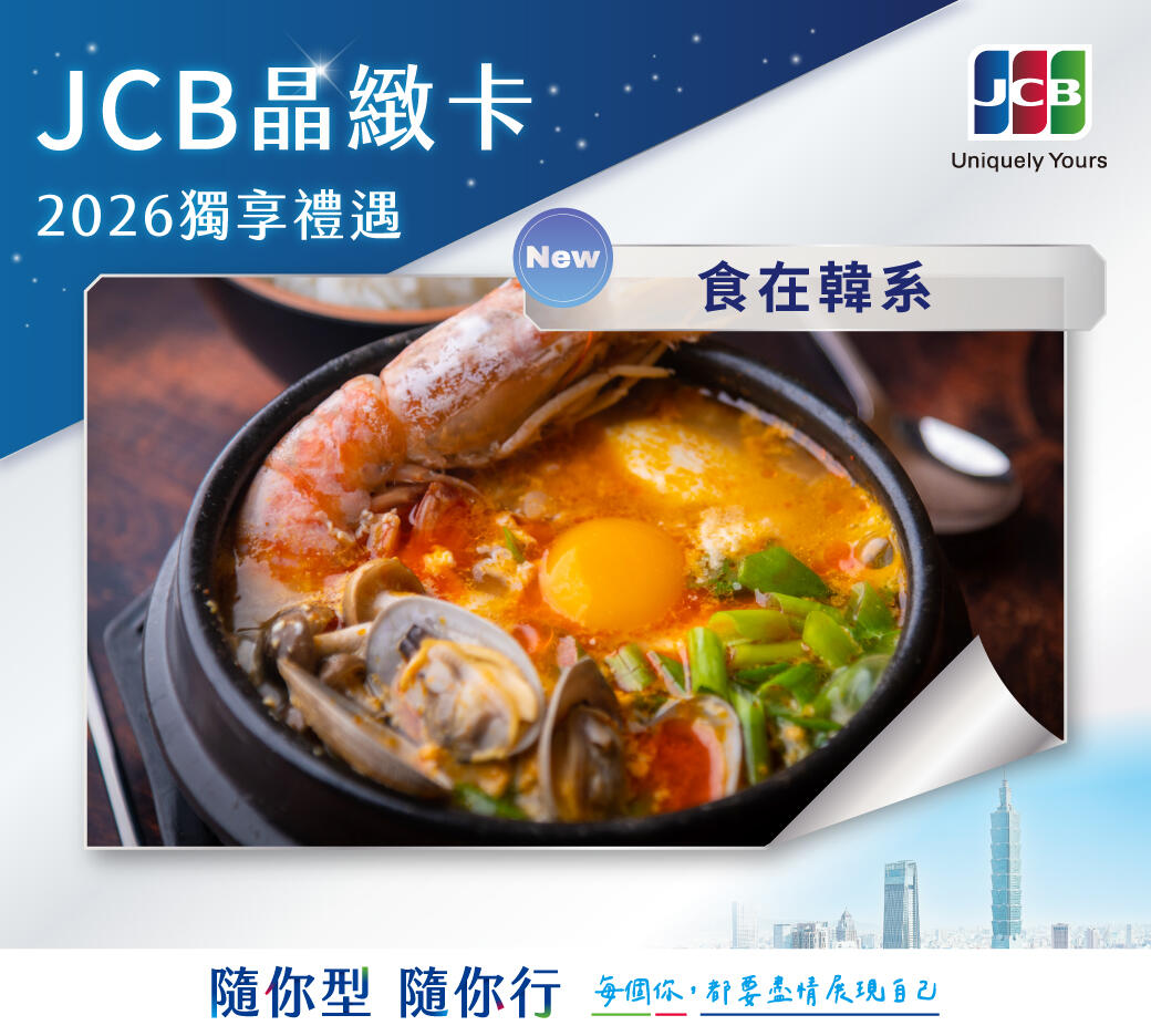 ※本活動僅適用於直接使用實體JCB晶緻等級以上信用卡或簽帳卡結帳之消費;行動支付、電子支付或第三方支付等,非直接使用JCB卡之交易恕不適用本活動。