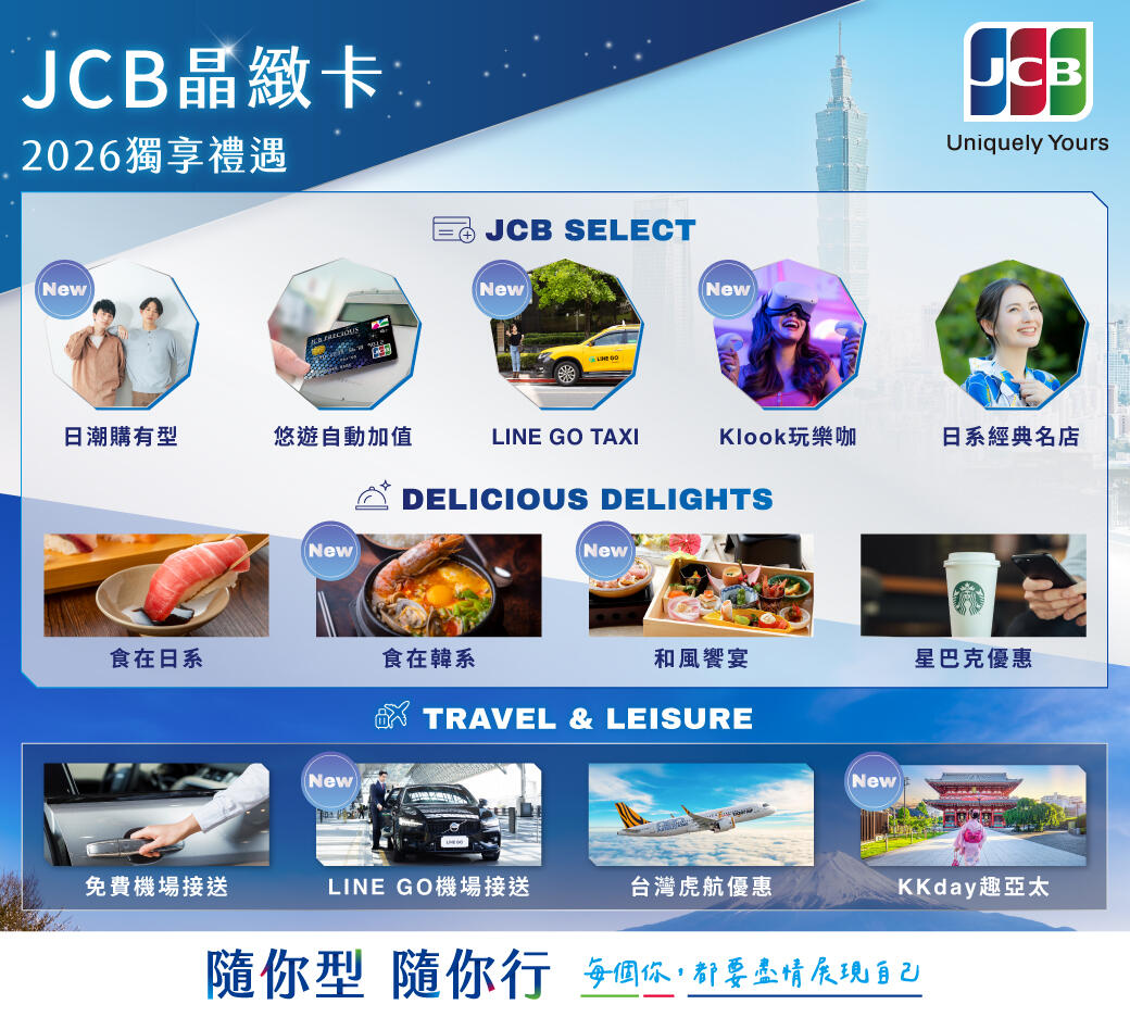 台灣地區發行之JCB極緻卡(Eternity)、JCB晶緻信用卡(Precious)、JCB晶緻簽帳卡(Precious Debit)