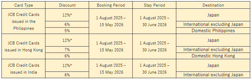 - Exclusive for JCB credit cards issued in Philippines, Hong Kong and India.