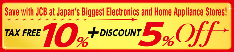 Spend with JCB at tax-free electronics and home appliance stores in Japan and get JCB's special 5% discount in addition to 10% tax free!