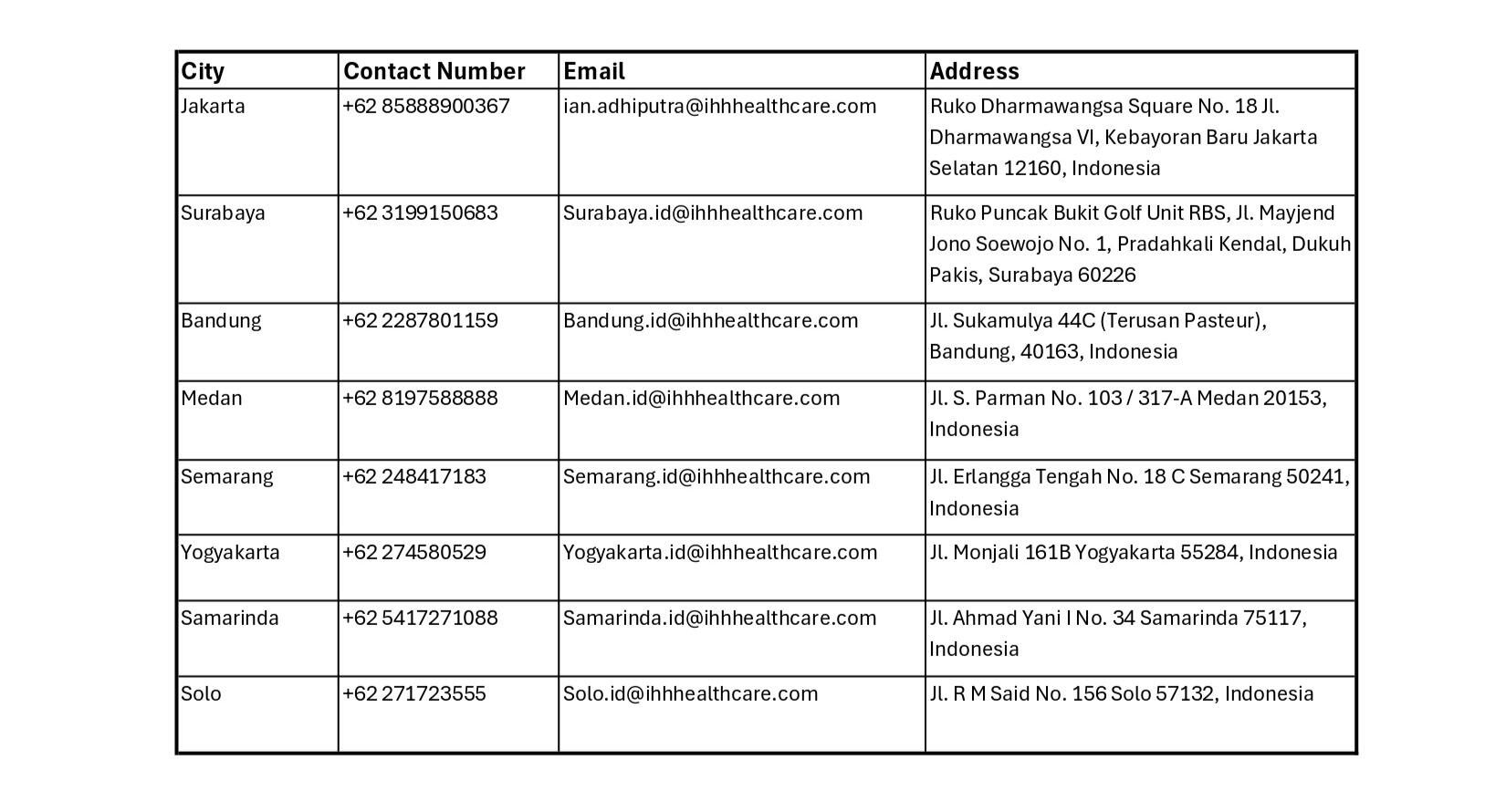 Catatan:Untuk menikmati diskon ini, pemegang kartu JCB Indonesia harus menghubungi kantor IHH Healthcare Singapura di Indonesia untuk menanyakan dan membuat janji temu.
