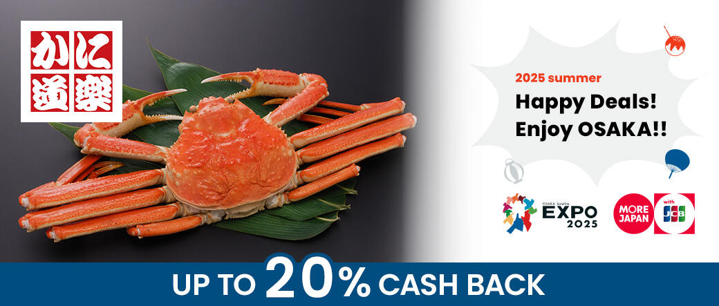 Dapatkan cashback 20% di “Kani Douraku” di kota Osaka dengan membelanjakan 20.000 yen atau lebih dengan kartu JCB Anda.