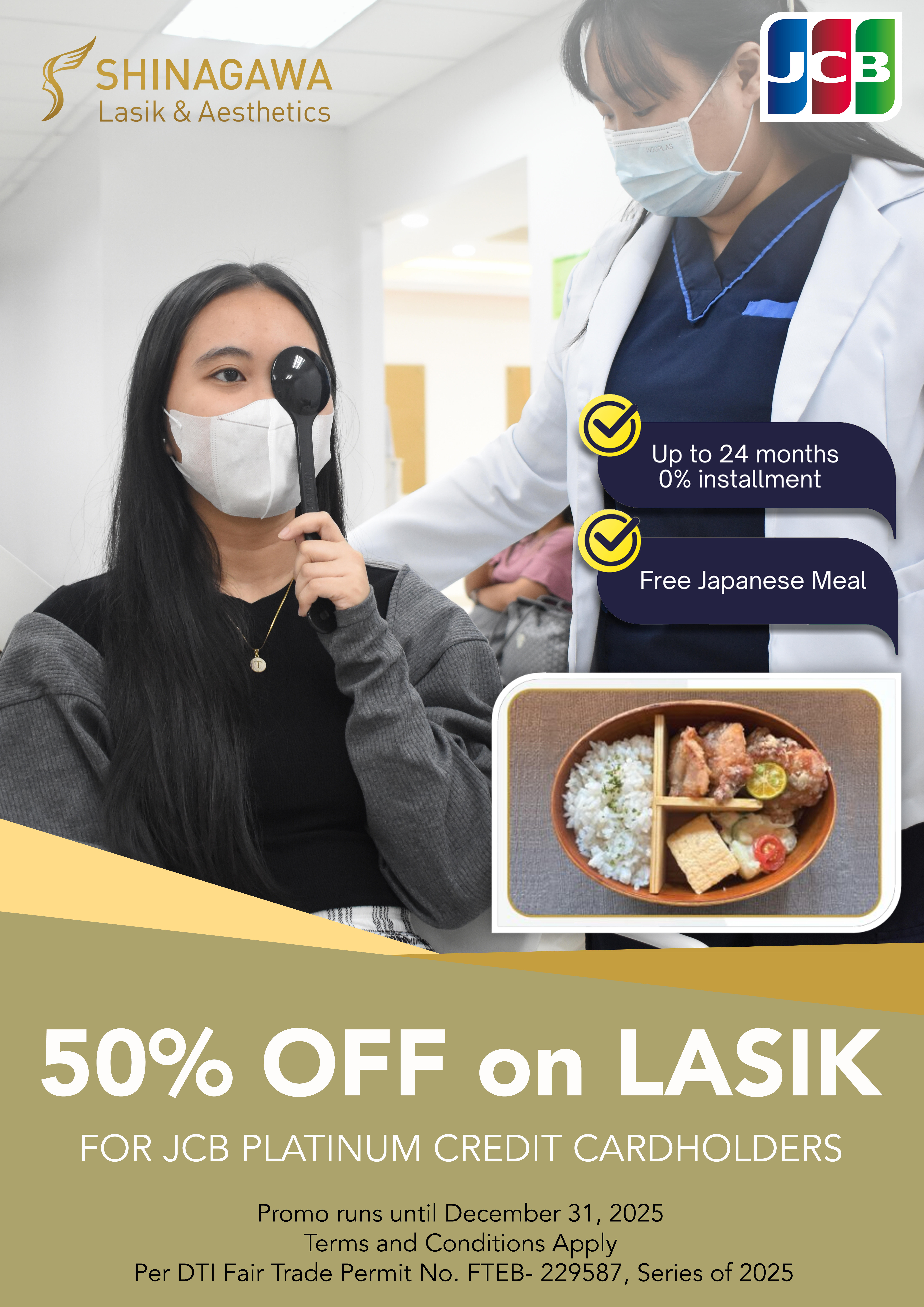 - JCB Platinum Cardholders must present their JCB Platinum Credit Card and inform the Shinagawa Lasik staff that they’ll avail of the JCB offer.