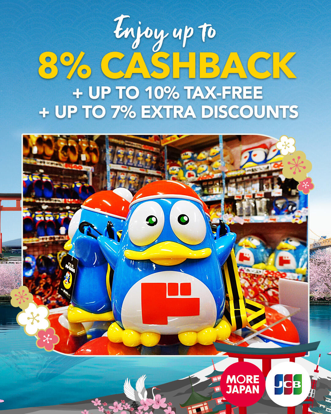 - Up to 8% Cashback when you spend a minimum of JPY 50,000