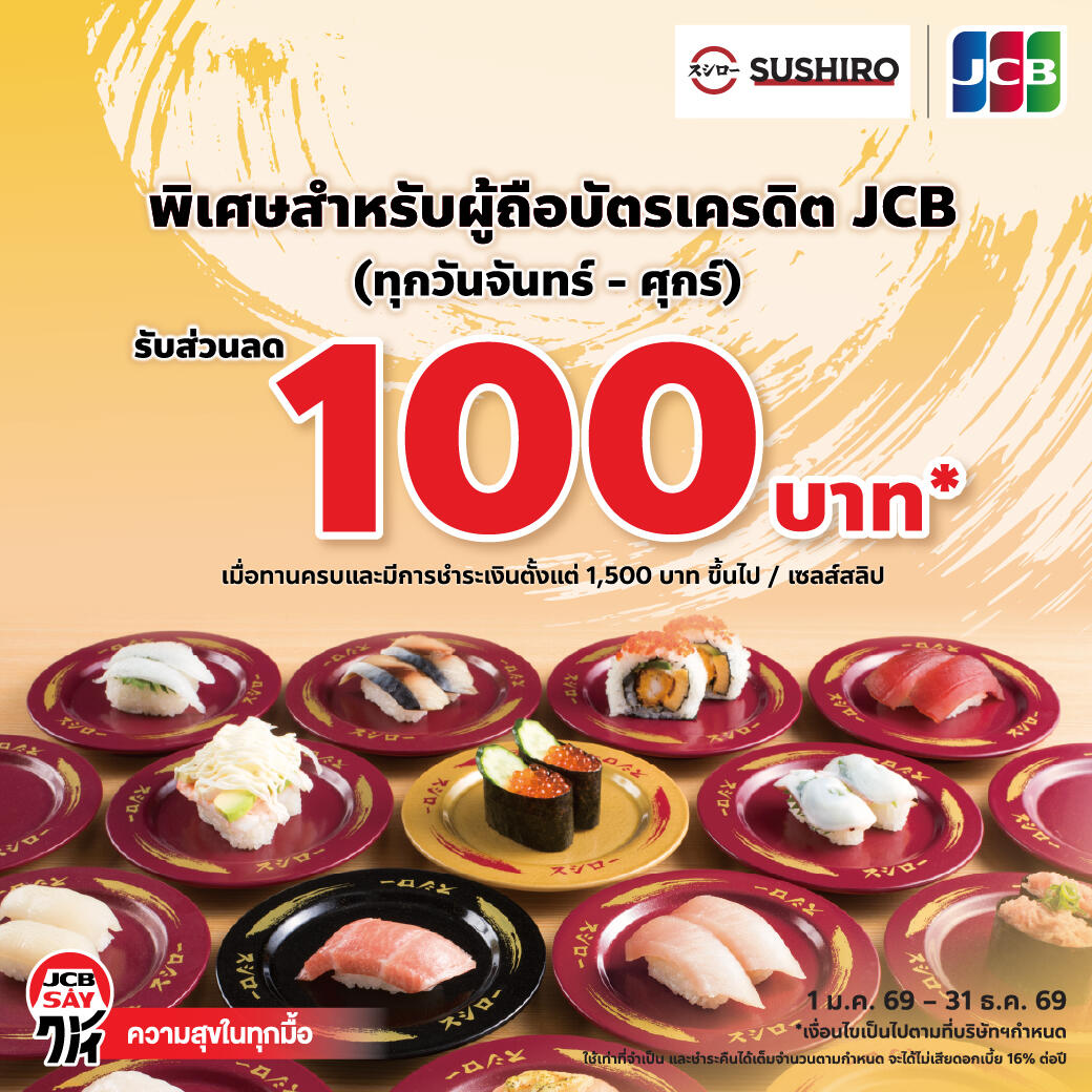 SUSHIRO: ทุกวันจันทร์ - วันศุกร์ รับส่วนลดมูลค่า 100 บาท*
