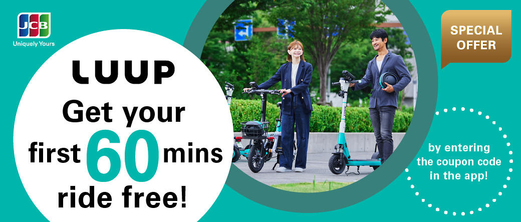 Nhập mã khuyến mãi độc quyền "JCB_ABR24" của JCB trong ứng dụng LUUP để được miễn phí 60 phút đi xe đầu tiên!