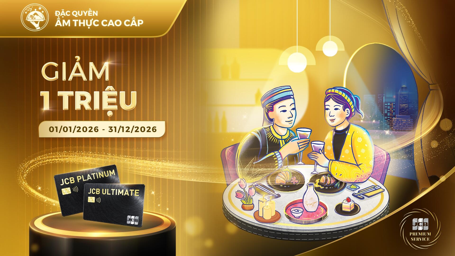 JCB Premium Service là chương trình đặc quyền được thiết kế dành riêng cho chủ thẻ JCB Ultimate và JCB Platinum, mang đến trải nghiệm dịch vụ cao cấp toàn diện.