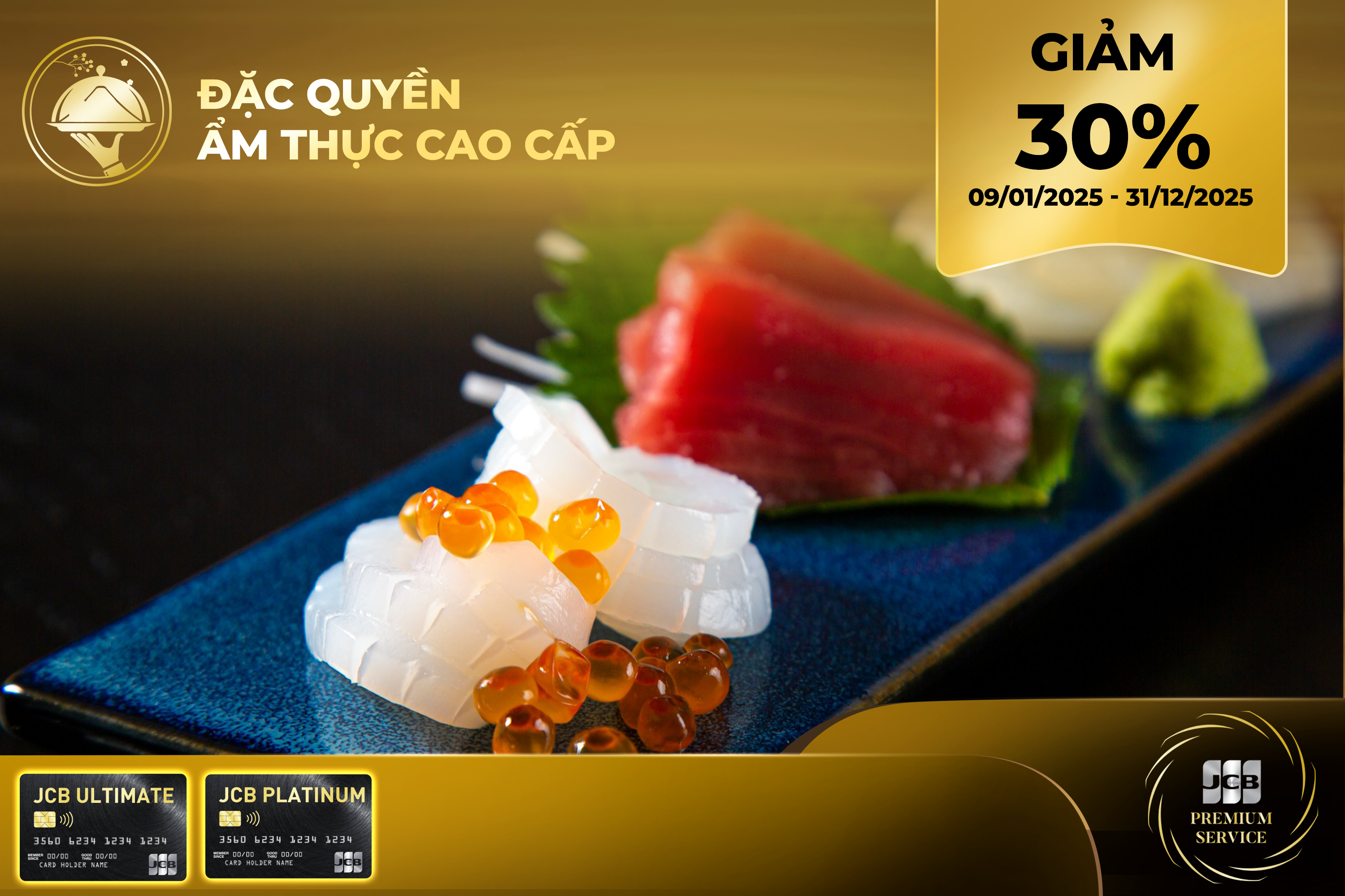Giảm 30% tối đa 1.000.000đ/hóa đơn tại 31 nhà hàng Nhật Bản và nhà hàng cao cấp được chọn bởi Michelin tại Việt Nam.