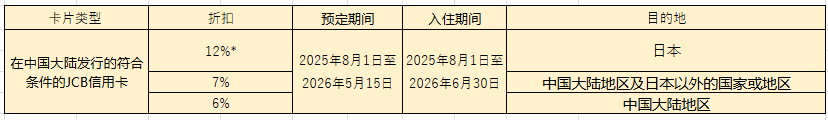 使用在中国大陆发行的符合条件的JCB信用卡,并通过JCB通道进行支付时,可享受如下专属优惠: