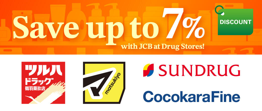 活動期間,至下列藥妝店品牌旗下指定商店購物,出示活動專屬優惠券,並使用JCB卡消費,即可享最高7%OFF折扣優惠。