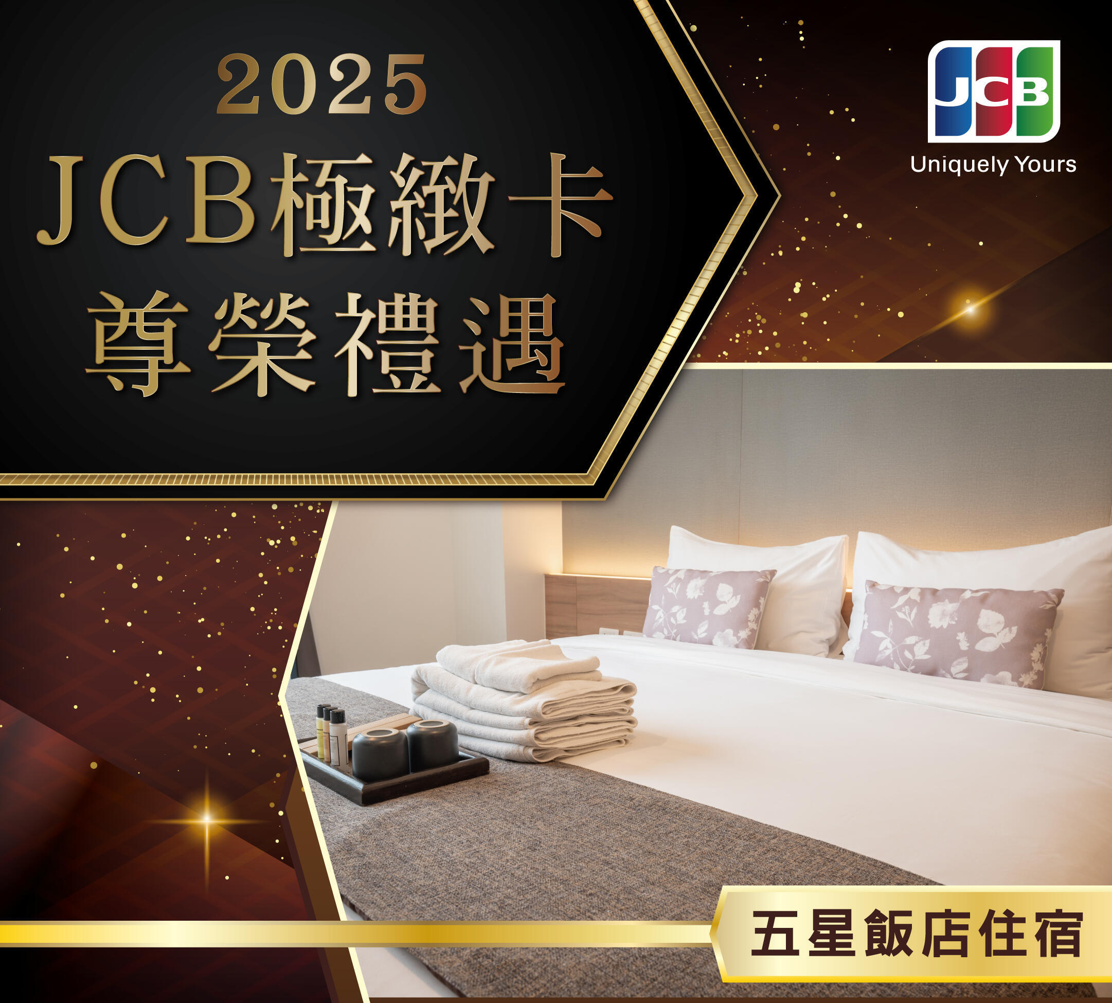 凡持有台灣各發卡機構發行之JCB極緻卡之持卡人(含正、附卡),透過專屬線上登錄系統(恕不接受電話客服登錄),登錄成功並取得活動序號後,須於序號有效期間內預約活動指定飯店住宿,並持該序號與登錄之卡號相同的JCB極緻卡結帳,即可享有JCB極緻卡專屬優惠價之尊榮禮遇。