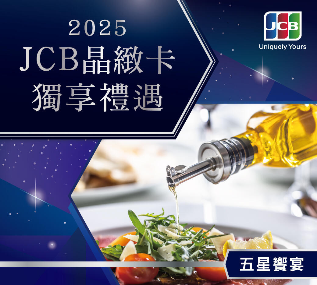凡持有台灣各發卡機構發行之JCB晶緻等級以上信用卡暨簽帳卡之持卡人,透過五星饗宴之語音專線或線上訂位系統,預約週一至週五(註2)用餐,於預約時段前往指定餐廳消費,使用與預約訂位同一卡號之JCB卡即可享有「兩人同行六折優惠」(兩人餐價六折加兩人原餐價10%服務費)之優惠(兩人同行用餐者必須依照餐廳安排坐同桌用餐,如兩人分桌坐不適用本優惠)。
